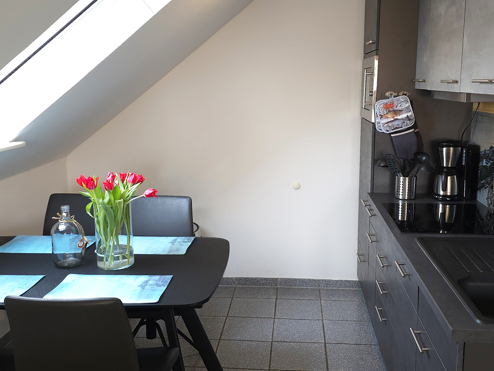 Wohnküche mit Mikrowelle und Spülmaschine,